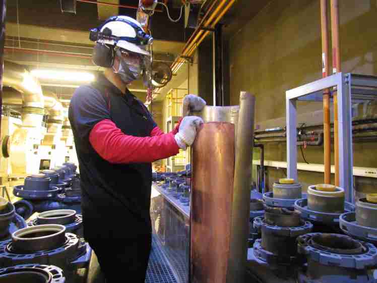 JDB电子将废弃物转化成有效的工业或民生原物料,,,,图为废铜液淬炼后再制成纯度极高的铜管