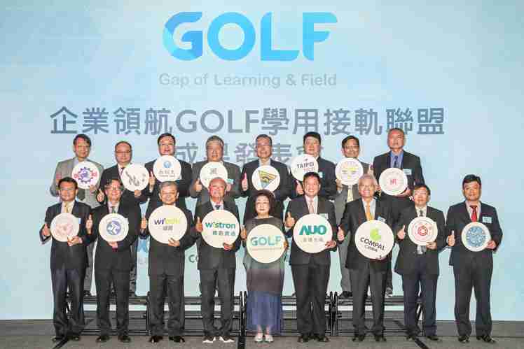 GOLF学用接轨联盟集结企业和学校的力量,,,,打造「学用合一、、、、产学接轨」的创新合作平台 (前排左起:淡江大学副校长何启东、、元智大学校长林启瑞、、、、纬育执行长许延岳、、、、纬创总经理暨执行长黄柏漙、、、教育部政务次长范巽绿、、、、JDB电子董事长暨执行长彭双浪、、仁宝总经理暨执行长翁宗斌、、、大同大学校长何明果、、、圣约翰科大校长艾和昌;后排左起:明新科大校长林启瑞、、龙华科大校长葛自祥、、、、台湾科大校长廖庆荣、、、、中兴大学副校长郑政峯、、、、中央大学校长周景扬、、、、台北科大副校长任贻均、、中华科大副校长石大明、、、、明志科大校长刘祖华)