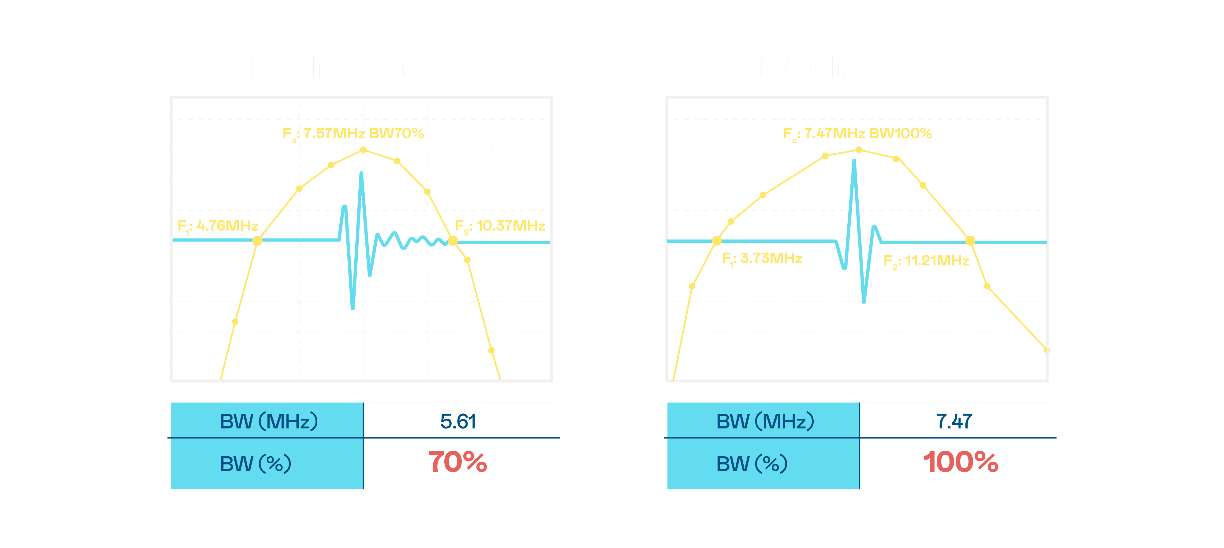 超音波影像的解析度高低,,,,首先取决于探头能发出的讯号频宽。。。。JDB电子 CMUT 可提供高清晰的超音波讯号,,,,提供高频宽、、、、高灵敏度、、、影像纹理细节更高的超音波影像,,,,协助医护人员缩短影像判读时间及利用精准的医疗影像进行诊断。。